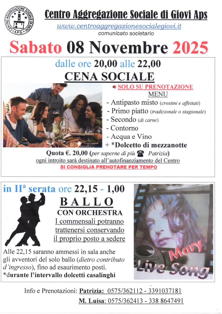 SABATO 8 NOVEMRE 2025 Cena e Ballo (segue locandina)