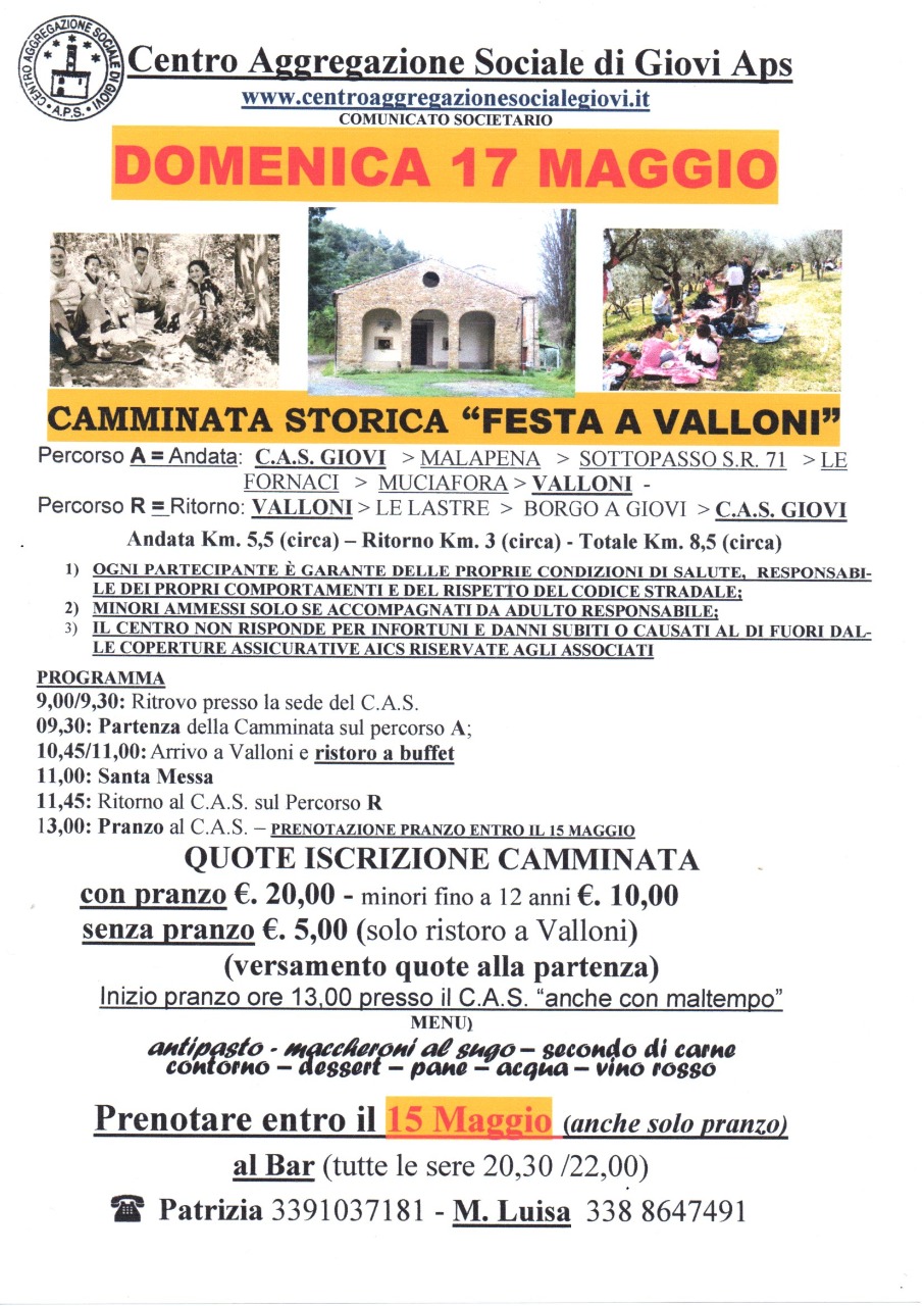 Camminata Storica "Festa a Valloni 2026" - segue locandina